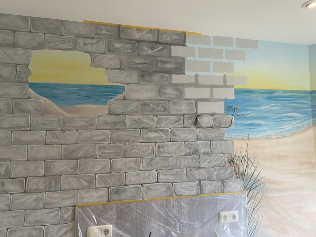 Als dann der erste Auftrag bei einem Freund rein kam, wusste ich, dass ich dieses wundervolle Kunst mit in mein Programm aufnehmen will. Es war ein wahnsinnig schönes Projekt und ich ging darin auf, eine Wand nach der anderen zu verschönern.